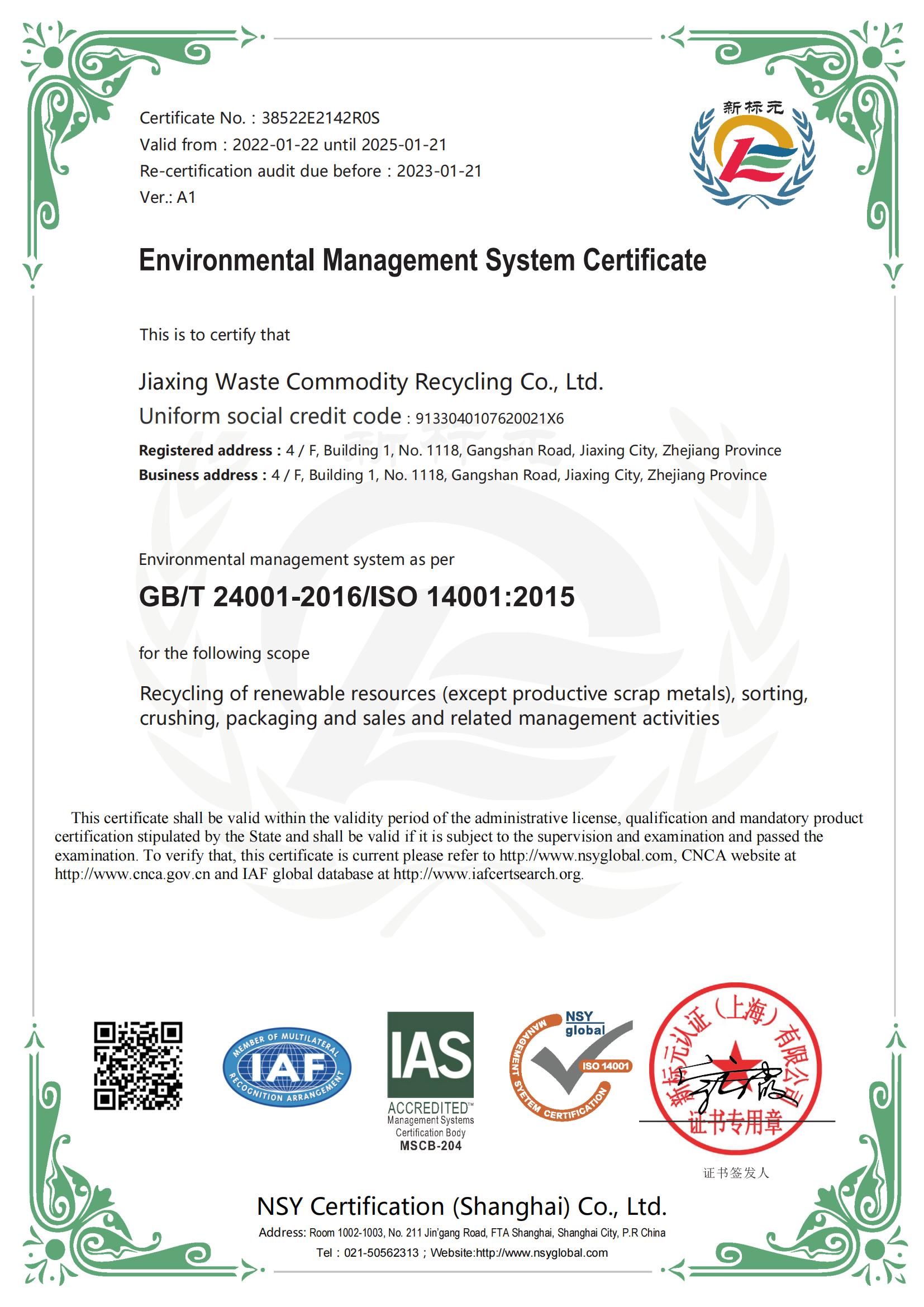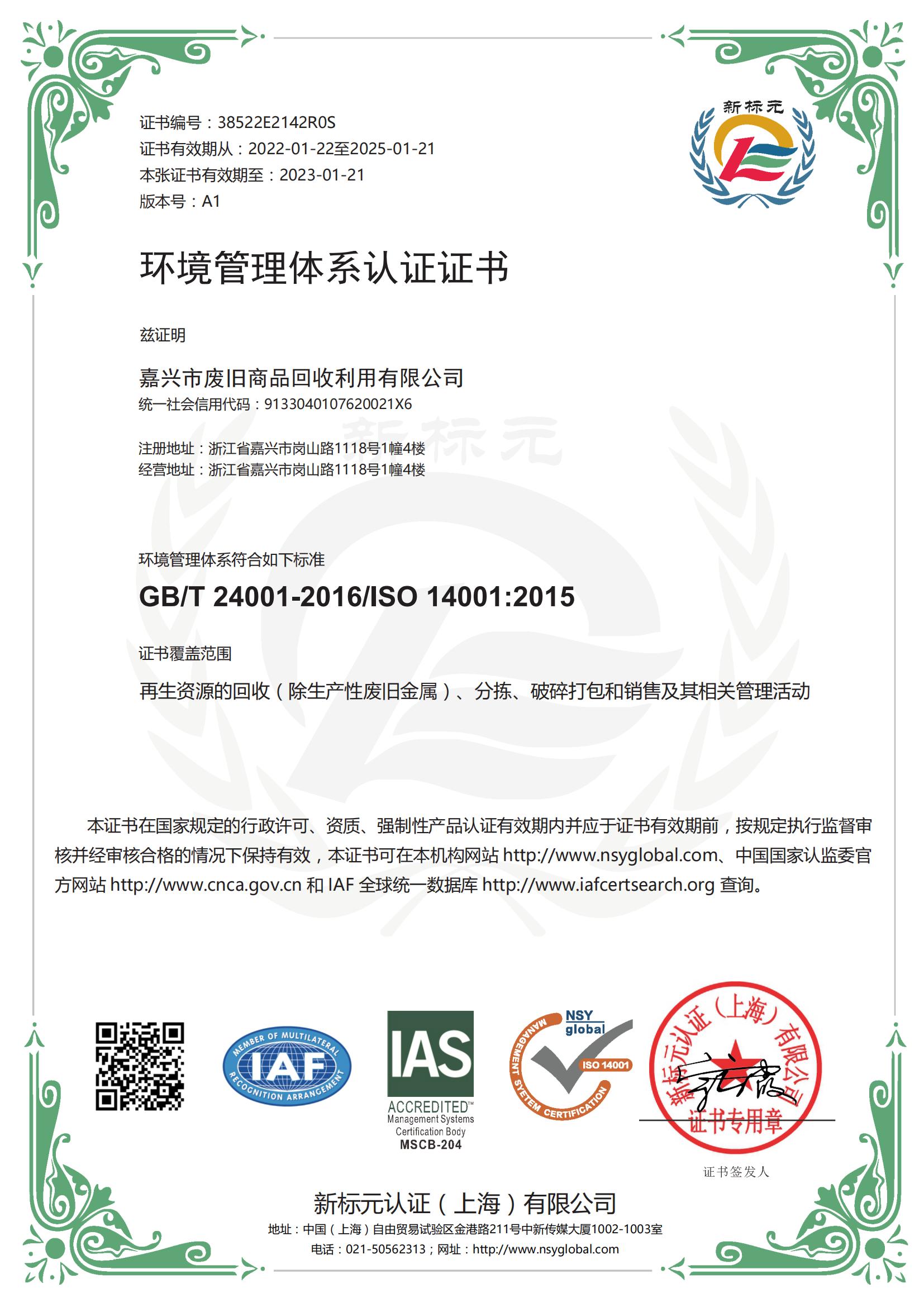 公司名稱:嘉興市廢舊商品回收利用有限公司(經(jīng)開)