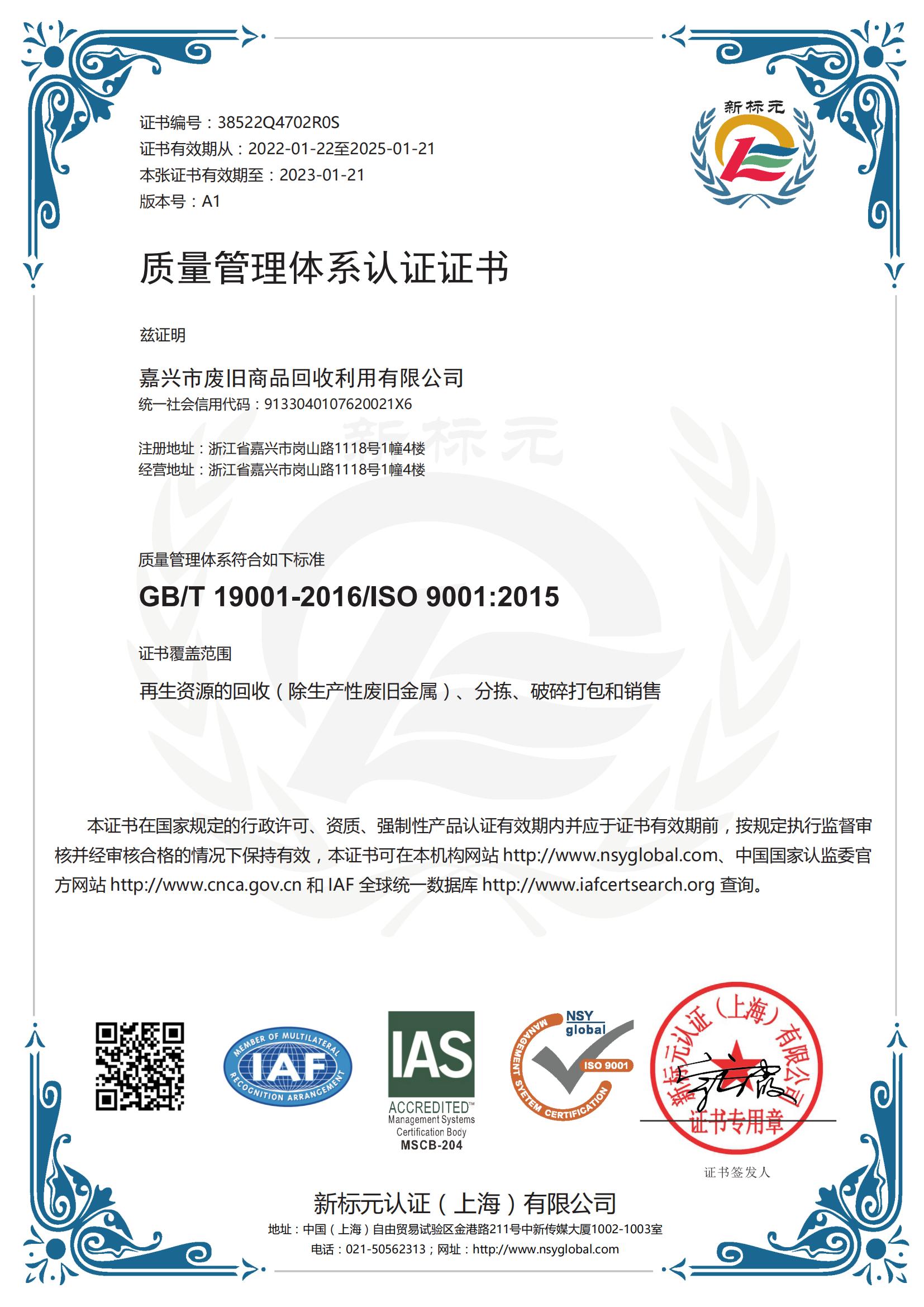 公司名稱:嘉興市廢舊商品回收利用有限公司(秀洲)
