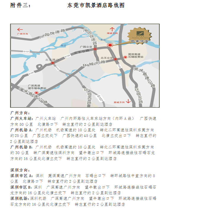 因代表到達(dá)時間比較分散,不設(shè)接站,報到處設(shè)在東莞市凱景酒店大堂。